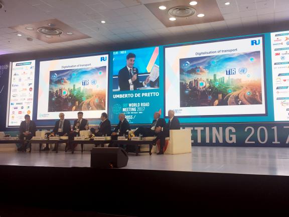 Генеральный секретарь IRU Умберто де Претто присоединился к высоким участникам сессии по инновациям, чтобы обсудить трансформацию мобильности и рассмотреть технологические факторы, влияющие на отрасль, а также роль IRU в управлении изменениями с помощью таких инструментов, как электронная накладная (e-CMR) и цифровые МДП.