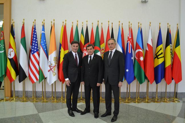 Состоялась отдельная встреча господина де Претто и Министра иностранных дел Туркменистана Рашида Мередова, в ходе которой обсуждались вопросы укрепления сотрудничества между IRU, Туркменистаном и его соседями по «Лазуритовому коридору».