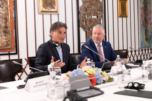 На высоком уровне в рамках двусторонней встречи перед форумом Умберто де Претто и Министр транспорта Казахстана, Его Превосходительство Нурлан Сауранбаев, обсудили ключевую роль автомобильного транспорта и системы МДП (TIR) в повышении прозрачности транзита и торговли.