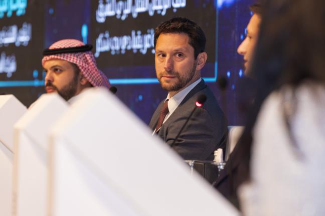 IRU также было организовано совещание за круглым столом, в котором приняли участие Мешаль Альмуфадхи (руководитель департамента грузоперевозок Главного управления транспорта Саудовской Аравии), Венсан Эрар (старший директор по стратегии и развитию IRU), Эйяд Карадшех (вице-президент по наземному транспорту на Ближнем Востоке и в Африке, DB Schenker), Денис Виктория Штааф (директор по вопросам устойчивости цепочек поставок и инициативам в области экономики замкнутого цикла, VCARE Academy) и Хонас Велес Гонсалес-Таррио (главный операционный директор, Alsa). Главной темой круглого стола стала важная роль устойчивого автомобильного транспорта в переходе от линейной экономики к экономике замкнутого цикла.